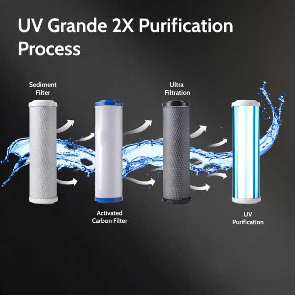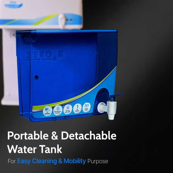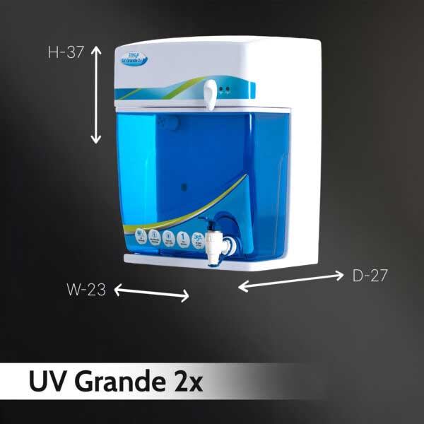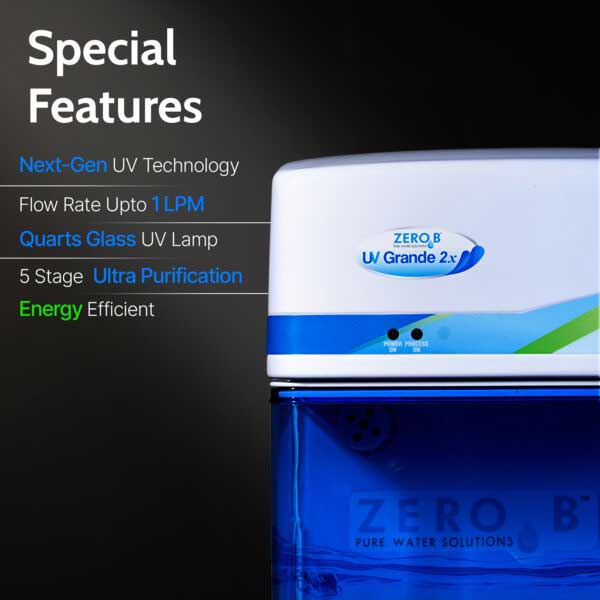 Drink Bacteria & Virus free water 24 hours a day from the detachable 6-litre storage tank.The ZeroB UV Grande 2X water purifier is recommended for water supplied by municipal corporations and pre-treated water sources.