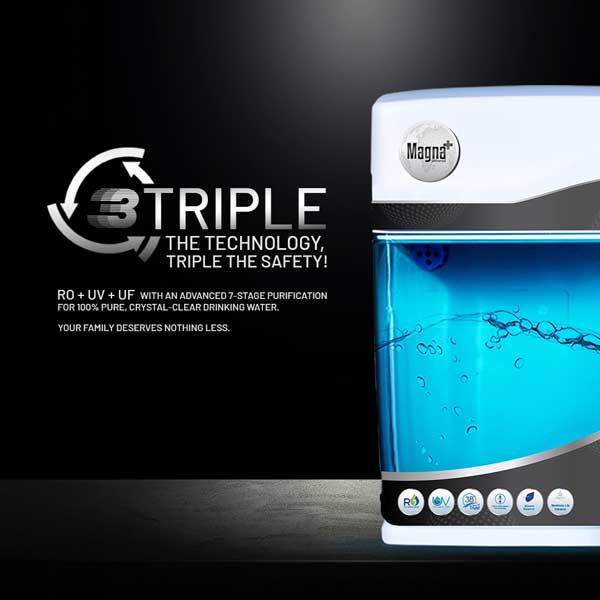 The ZeroB Magna Plus Universal RO is a high-performance water purifier equipped with advanced Triple-X purification technology—combining RO, UV, and UF stages for complete protection.