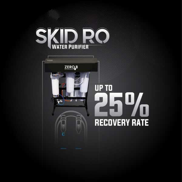 The ZeroB Skid RO+UV is a high-capacity, 6-stage water purifier designed for large-scale needs. With a powerful purification flow rate of 30+50 litres per hour, it ensures a steady supply of clean, healthy water. The purifier uses advanced RO and UV technology to eliminate bacteria, viruses, excess salts, pesticides, heavy metals, and harmful chemicals. Its fully automatic operation, high-flow membrane, and dry-run protection make it durable and user-friendly. With a compact and efficient design, the Skid RO fits seamlessly into professional environments requiring consistent and safe drinking water.